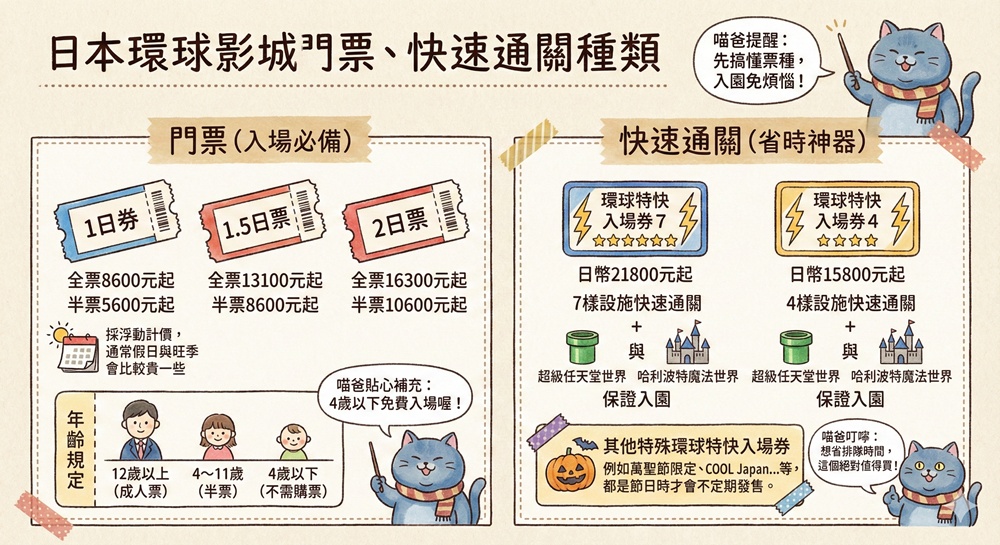 想要順利攻略日本環球影城,第一步就是需要知道門票種類、快速通關種類、往返環球影城交通,也需要知道那邊買門票會最便宜。