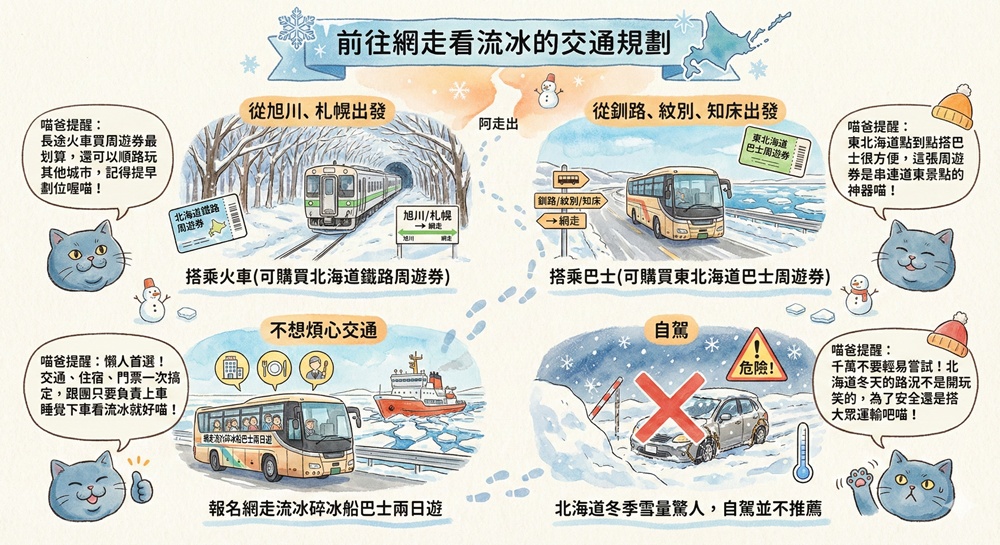前往網走看流冰的交通規劃
