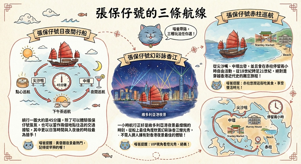 張保仔號如今有三條航線可以選擇,除了是不同的交通接駁方式,也是感受香港風貌的另一種方法。