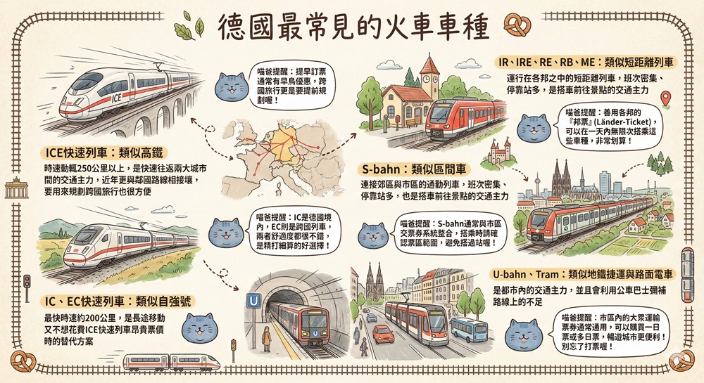 來看看喵爸的德國火車交通整理,下次就用德國火車規劃一場豐富的德國旅遊吧!