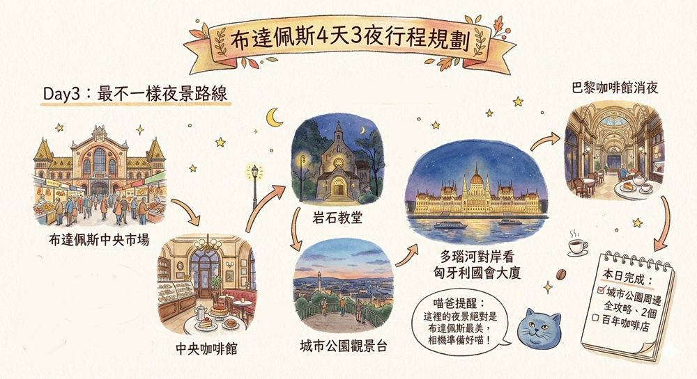 分享完布達佩斯的景點、美食、交通、住宿與自助旅遊注意事項以後,喵爸也分享布達佩斯4天3夜推薦的規劃方式,這是個非常適合漫遊的城市,我相信你一定會像我一樣愛上這裡^^