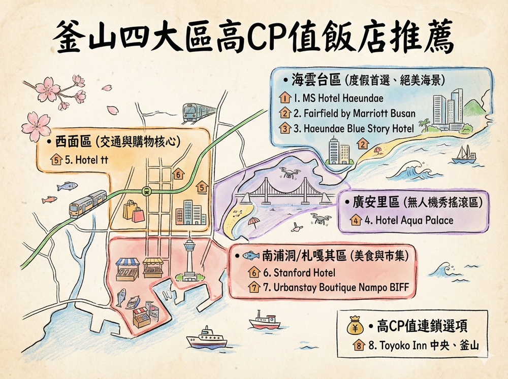 釜山住宿就以西面、南浦洞、海雲台三個地方最為推薦,但這三個地方該怎麼選擇?又有哪些不會踩雷的好飯店呢?