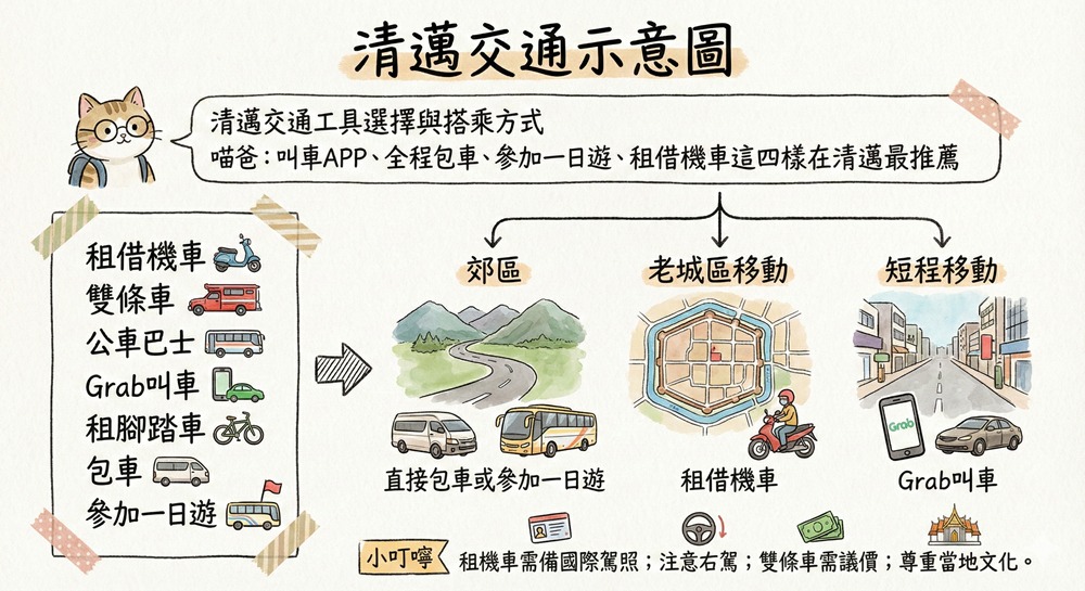 清邁市區與周邊景點交通規劃方式