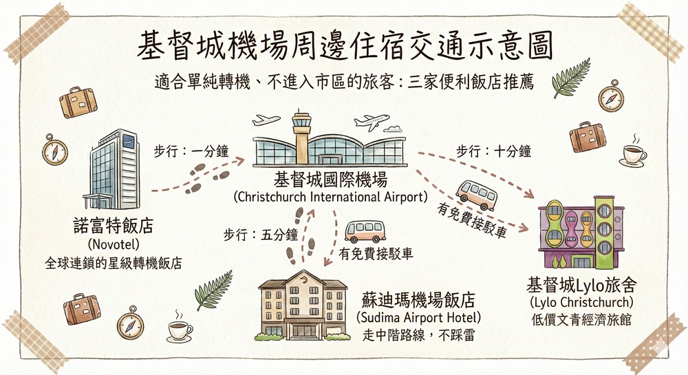 紐西蘭景點實在太多,所以許多觀光客會選擇直接略過基督城不進入市區,單純就把基督城機場當作轉機的樞紐,如果你是這種遊客,那機場周邊這三家飯店絕對非常適合你。