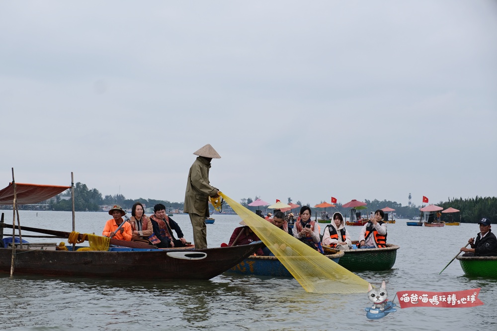 漁民出海捕魚近年已經慢慢變成表演性質,只要有竹籃船靠近,漁民就在那邊不斷重複撒網收網,只為了讓遊客看到會安迦南島的傳統生活樣貌,這份促進觀光的用心實在讓人要默默按下個讚。