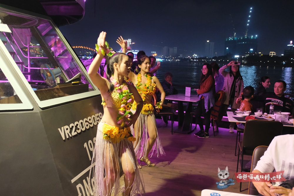 我們這天選的是峴港海神號的中式桌菜,八菜一湯與船上的音樂舞蹈演出水準都不差,每人平均大概只要700~800元台幣,我們親友團一行十多人都給了滿意的評價。
