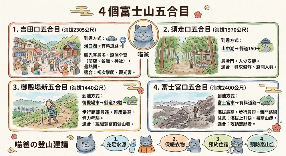 4個富士山五合目,4條難度不同路線