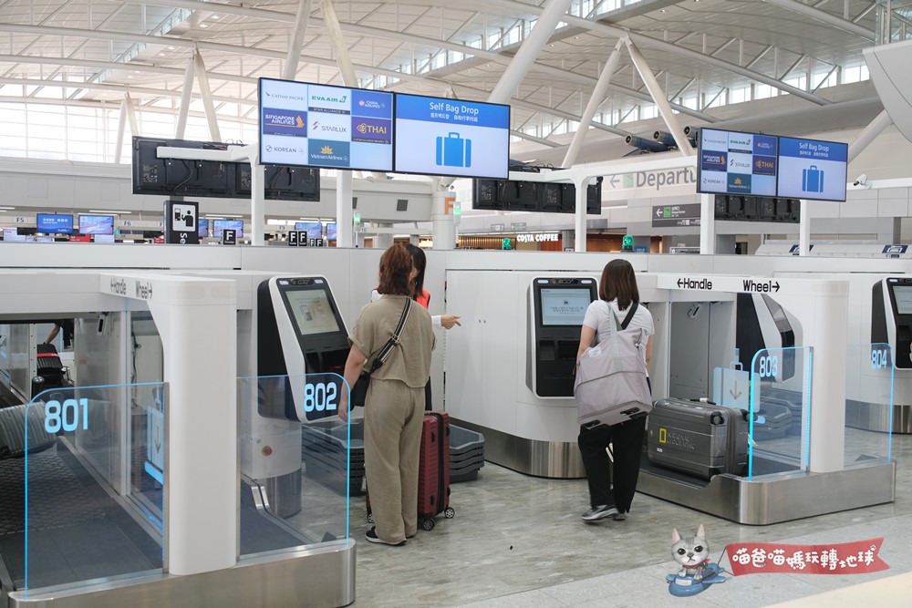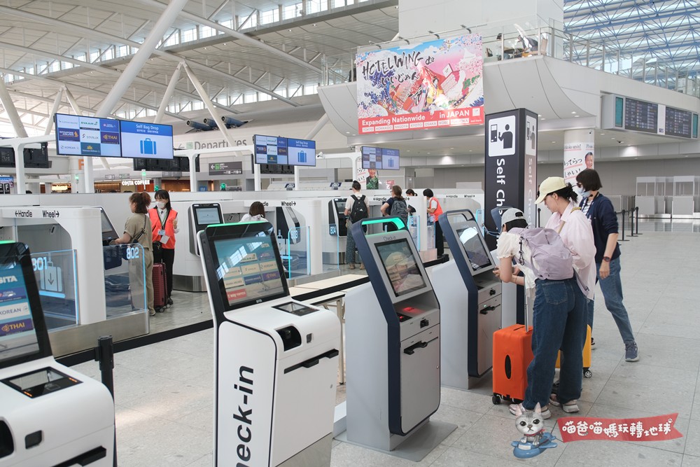 設備逐漸現代化的福岡機場,從今年開始導入自動報到、自動托運行李的服務,由於遊客大多還不熟悉所以使用的人不多(支援中文、旁邊也會有服務人員協助),不過這絕對是未來趨勢,喵爸大推^^