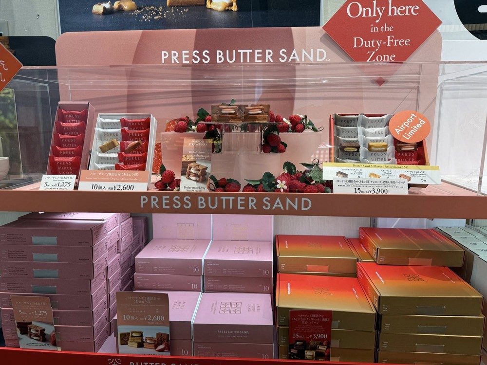 伴手禮更是齊全無比,不論是PRESS BUTTER SAND的夾心餅乾、東京的NY、各色百年長崎蛋糕老店、萬年不敗的薯條三兄弟…..,機場伴手禮店通通是數量種類齊全,而且一律免稅價,難怪常有人說其實伴手禮只要在機場買就好。
