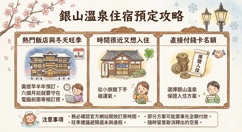 銀川溫泉範圍並不大,全部只有11家溫泉旅館,再加上每家溫泉旅館房間數都不多,該預訂哪一間旅館比較好?怎麼在旺季預訂到房間?怎麼比價?這篇就來分享喵爸的銀山溫泉訂房經驗!
