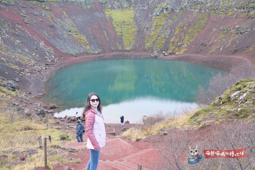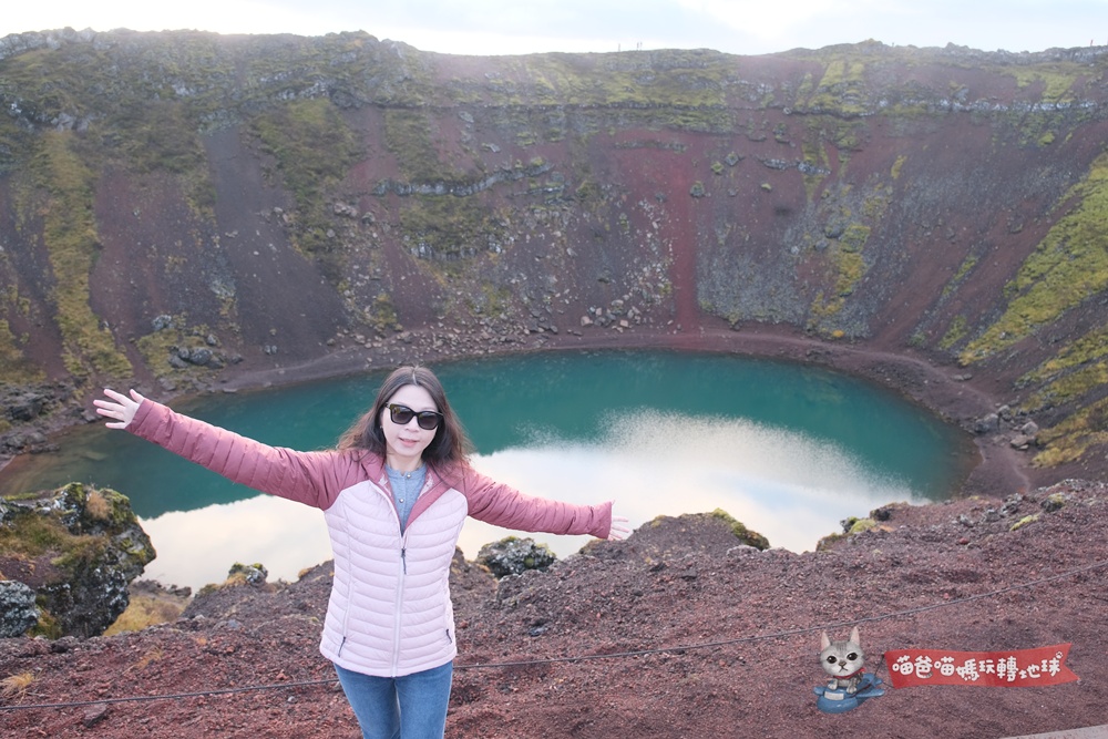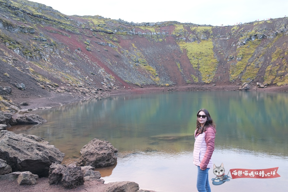 第一個景點我們來到火口湖(Kerið),原本只預計停留半小時就離開,卻意外發現環繞火山口走一圈風景美的讓我太出乎意料,走走拍拍硬是拉長到1.5小時才捨不得離開。