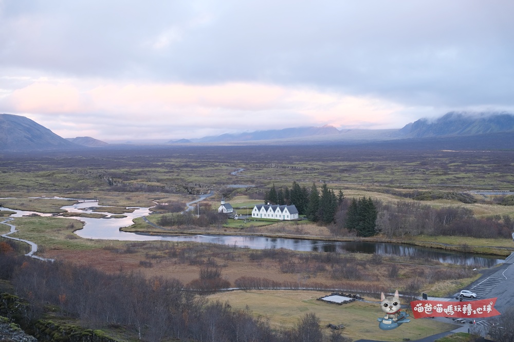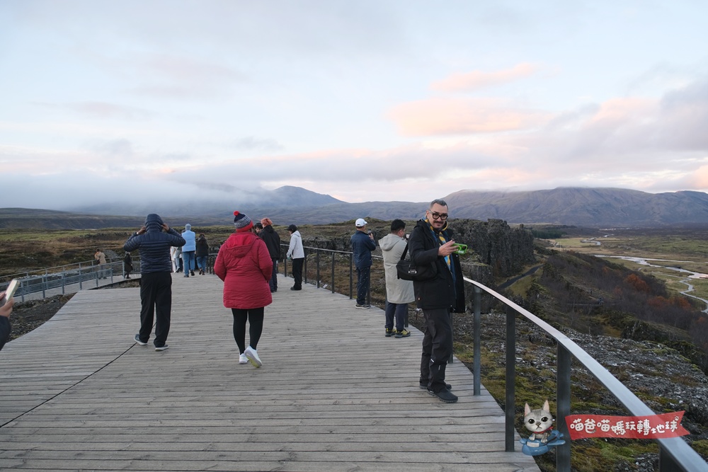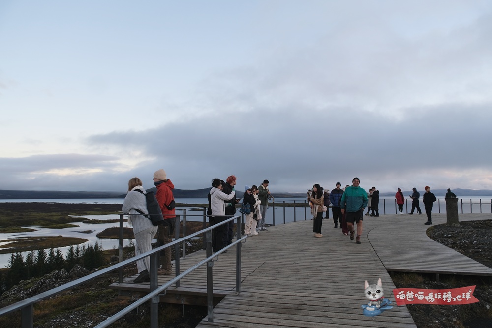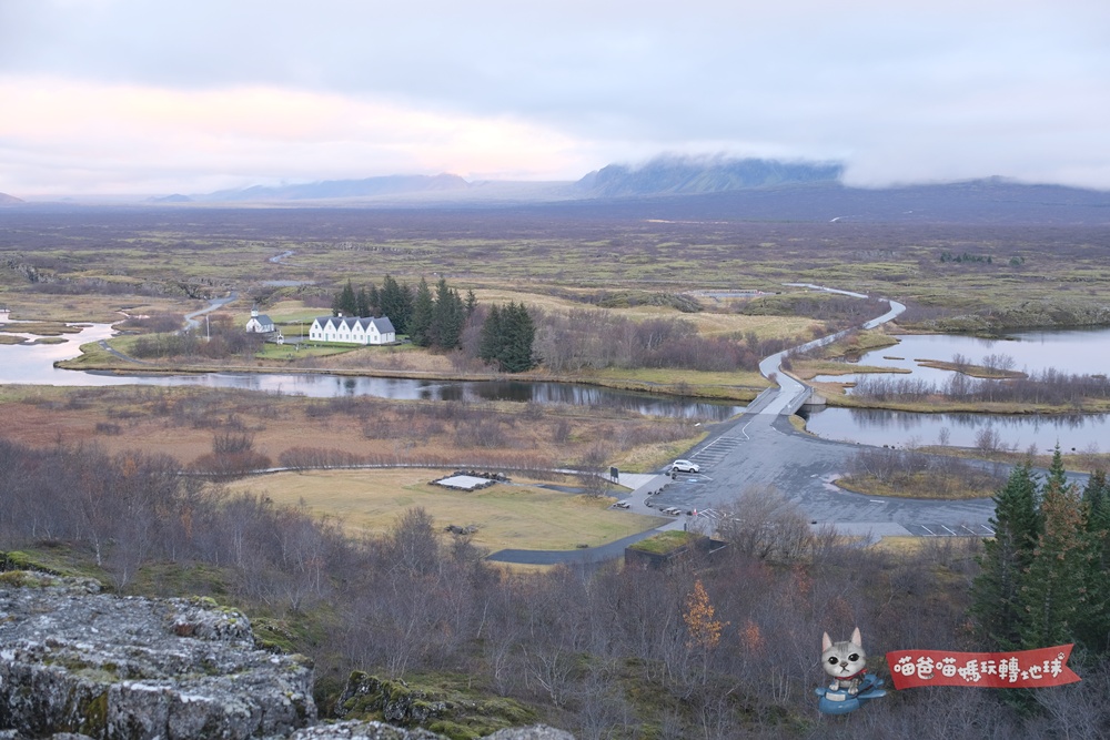 觀景台除了可以居高臨下看見歐亞板塊與美洲版塊裂縫,同時也是遠眺整個遼闊國家公園的最佳地點,天氣好的時候更可以看到讓人醉心的冰島日落,真的是美到不行。