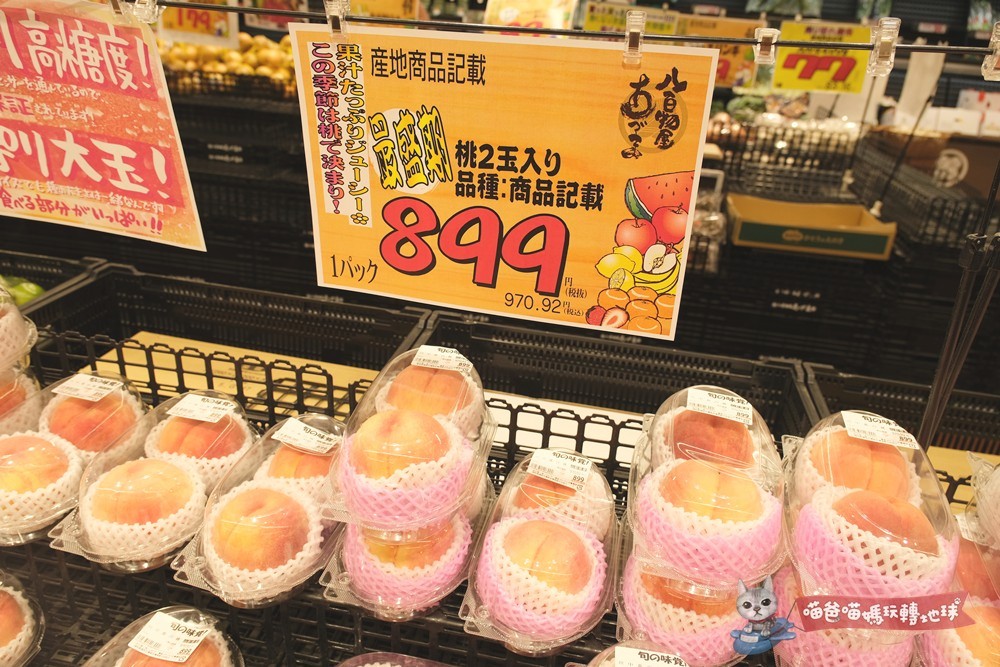 其中最推的當然就是LOPIA 食生活超市,水果生鮮種類齊全的驚人,我們這次造訪恰好遇到水蜜桃產季,甜度與大小都破表的水蜜桃每顆大概400日幣就有,直接就是水蜜桃財富自由。