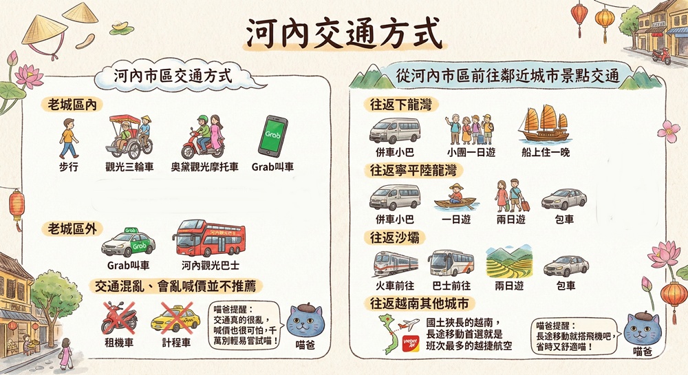 交通方式:河內觀光巴士、Grab叫車