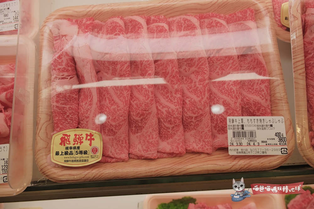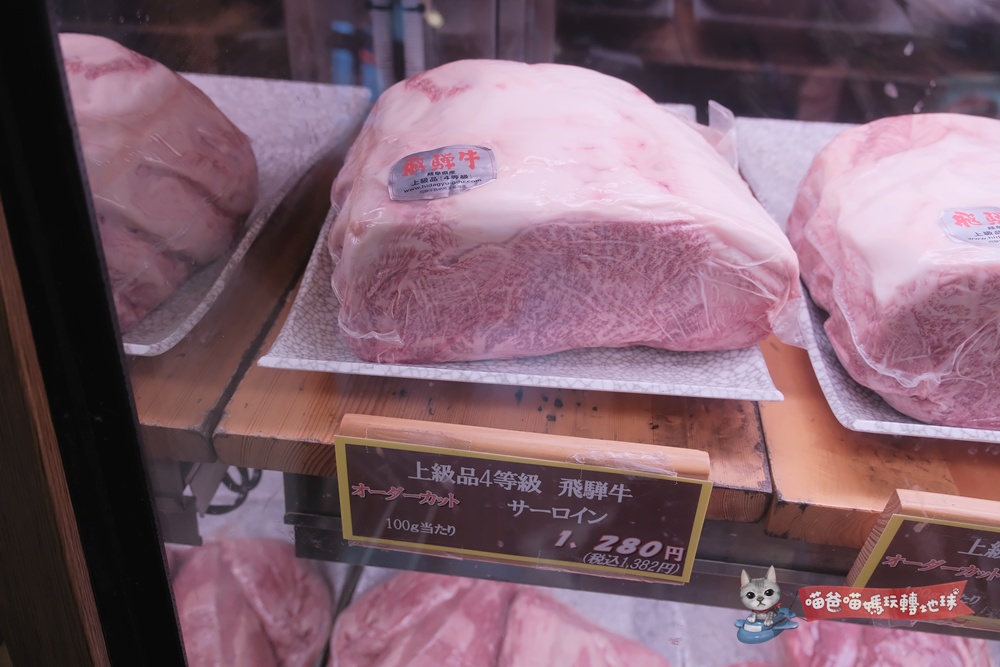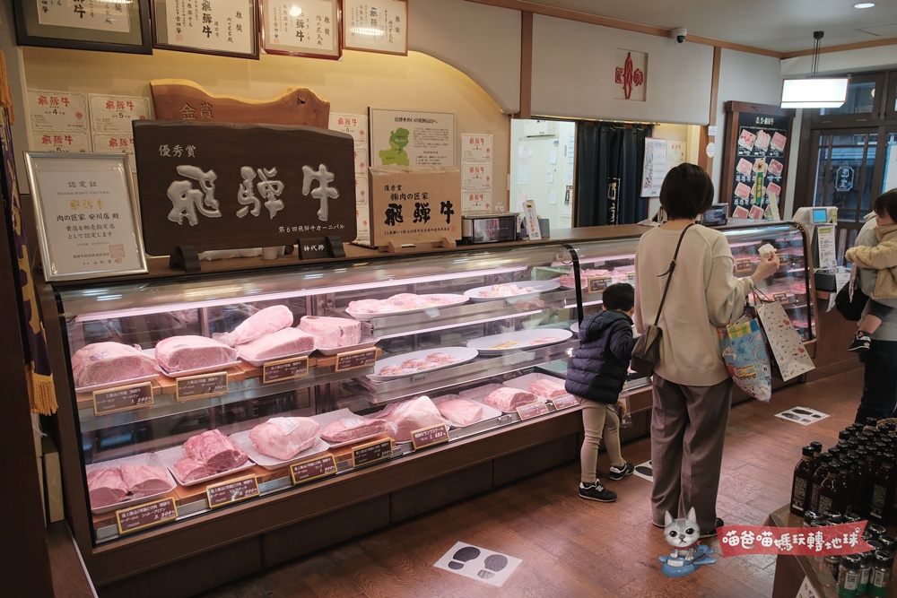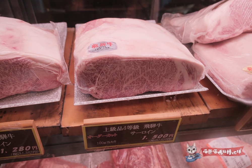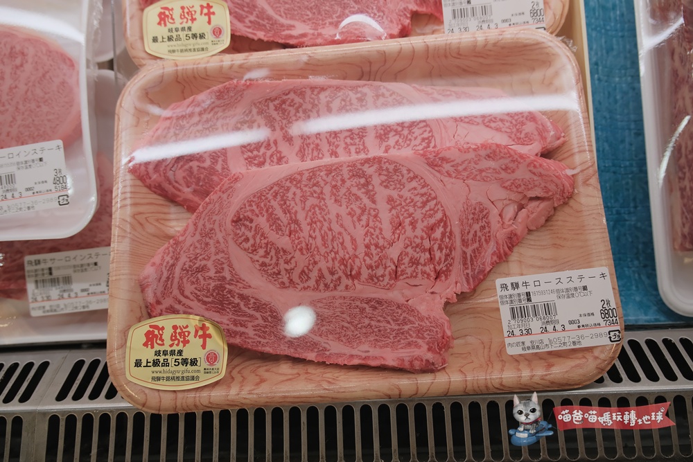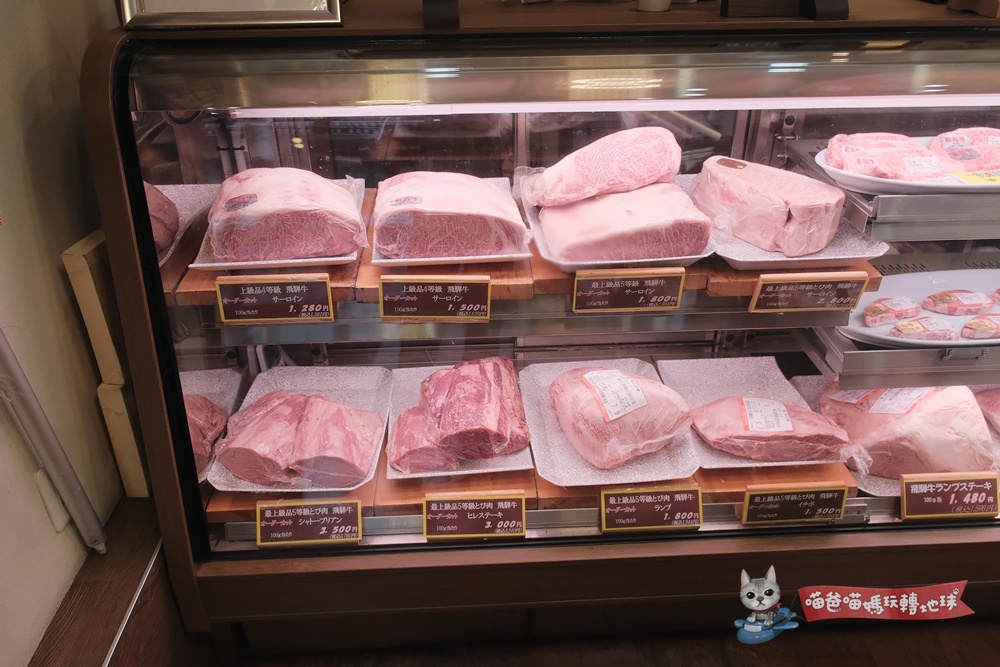 離開前,喵爸又特地去逛了一下附設的肉舖,看著冷藏櫃裡一塊塊標著A5等級、價格卻只有台灣一半不到的飛驒牛,只恨這次住的飯店沒有廚房,不然回飯店還可以自己煮個5A和牛牛排,該有多好!