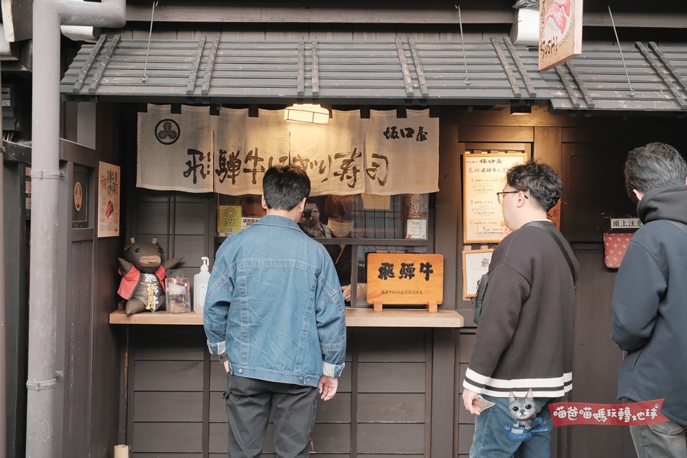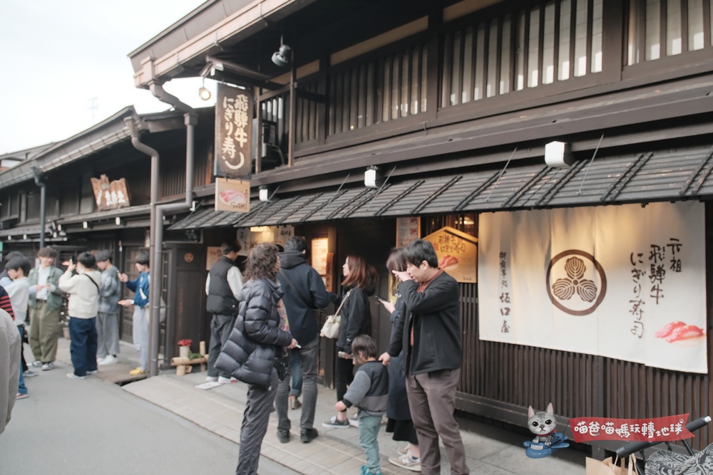 高山三町通老街(さんまち通り)一直以來都有「飛驒小京都」之稱,來到這裡除了觀看江戶時代的木造建築,在大街上直接大吃飛驒牛握壽司更是最經典的選擇,其中人氣最旺的就是排隊人龍沒斷過的こって牛