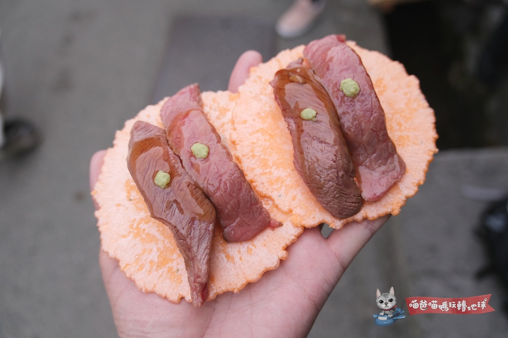 販售品項也很簡單,依照飛驒牛部分等級分為飛驒牛赤身握壽司、飛驒牛霜降握壽司、飛驒牛Premium 握壽司等幾種,由於價格差異可接受所以當然就是直上最頂的Premium(不過這個通常很早就會賣光)