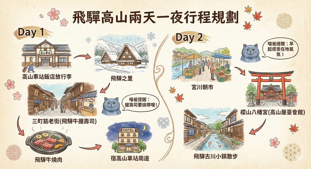如果你在飛驒高山停留兩天一夜,該怎麼安排才能玩得盡興?