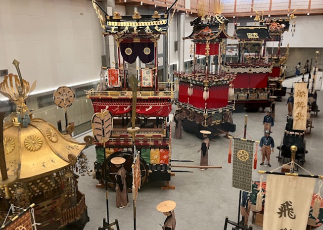 即使不是祭典期間來,也強烈建議一定要買票進入旁邊的「高山屋臺會館」朝聖一番。這裡展示了高山祭實際使用的華麗屋臺,每一台都是登峰造極的工藝品,近距離觀看真的會被那精細的木工與雕刻給震撼。
