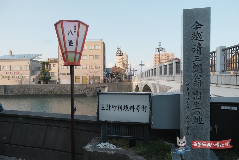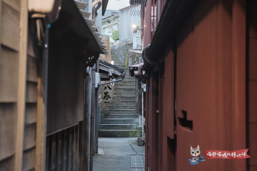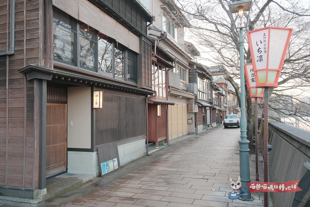 喵爸建議的玩法是:下午先到東茶屋街逛街吃午餐、喝下午茶、參觀茶屋建築,接近黃昏時分再穿過淺野川大橋,前往主計町茶屋街看最有名的「暗坂」並享用懷石晚餐,一次就能感受兩種完全不同的風情。