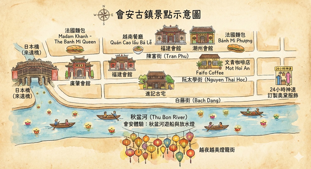 不用趕行程,會安就是要慢慢玩。這份一日散步地圖,帶著你從早吃到晚,感受會安的日夜變幻。