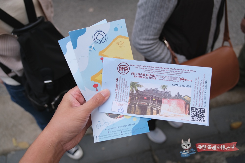 雖然走小路進去古城區就不會被問門票,但喵爸還是建議直接購買,原因除了是為古蹟維護盡一分心力以外(很便宜大概才台幣60元),而且有門票也才能夠進入會安古鎮的五大古蹟。
