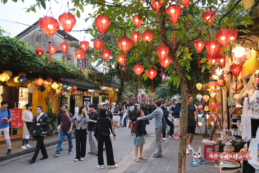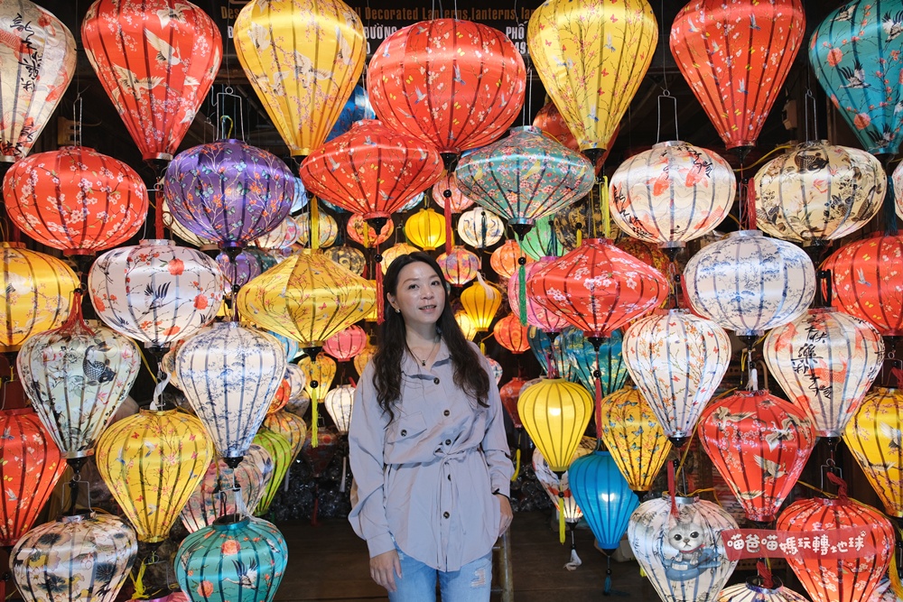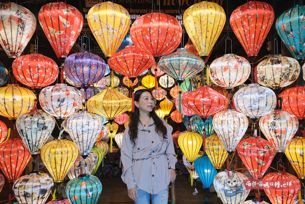過了橋來到會安古鎮的夜市區域,這裡掛滿了五顏六色的手工燈籠。你只要買個燈籠就可以在燈籠店裡盡情拍照,那種五彩繽紛的流光溢彩視覺衝擊,是會安夜晚最美好的註解。