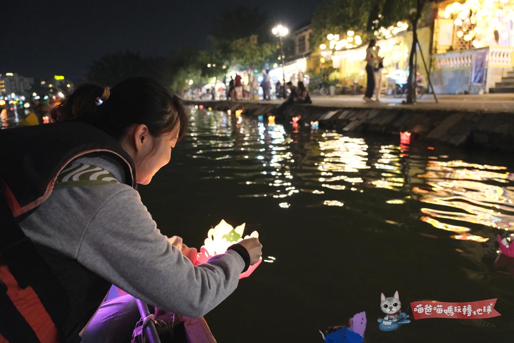 當夜幕低垂,秋盆河(Thu Bon River)兩岸會亮起無數燈籠,這時候最棒的活動就是搭乘傳統的手搖舢舨船加入其中。 船夫會划著船帶你在河中央輕輕蕩漾,你可以乘機將一盞盞紙紮的水燈,許下願望後輕輕放入河中。看著水面上點點燭光隨波逐流,搭配岸邊熱鬧的夜市燈火,那氣氛實在是無比浪漫^^