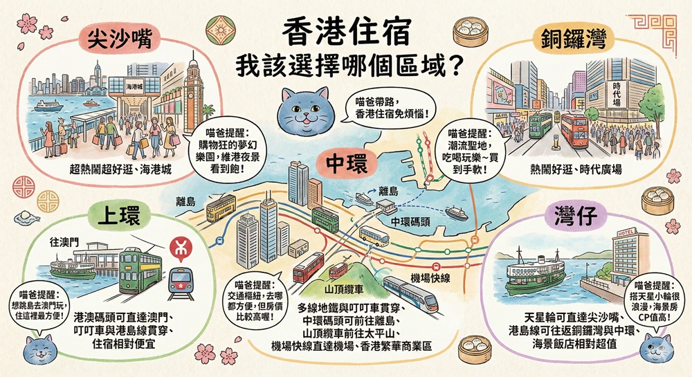 上環、中環、灣仔、尖沙嘴….這幾個是香港最熱鬧的區域,也是香港首選的住宿地點。交通便利四通八達、鄰近維多利亞港與購物中心、前往各景點都非常方便,如果你不知道香港該住那邊,選擇上環、中環、灣仔、尖沙嘴絕對不會錯。