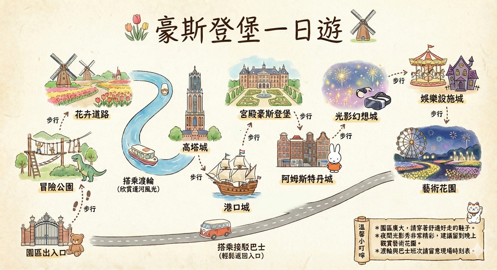 推薦方式:可入園以後直接搭船到豪斯登堡最深處,然後再慢慢逛回來