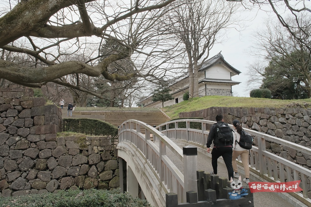 這次我們就住在金澤兼六園附近,早起吃完早餐以後過個馬路就能抵達金澤城公園的入口。我們沿著緩坡慢慢散步,預計停留的時間大約是1~2個小時