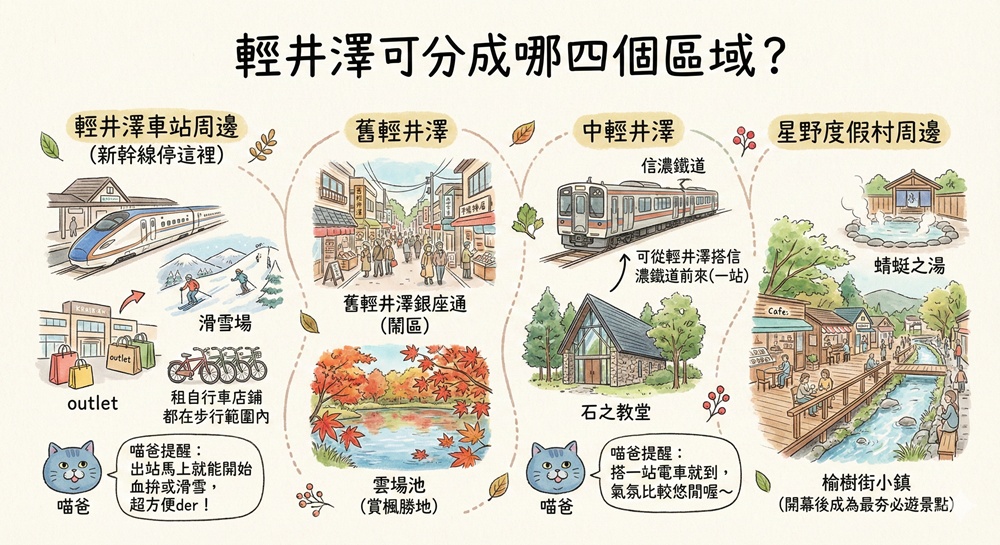 輕井澤可以分成哪四個區域?
