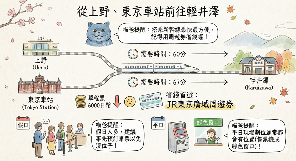 上野與東京車站因為有北陸新幹線停靠,所以會是從東京往返輕井澤最方便快速的首選