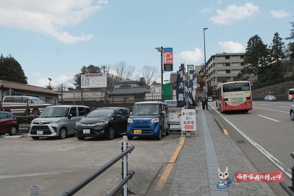 停車資訊: 兼六園桂坂口對面有縣營兼六駐車場,一般小客車第1小時300日幣,之後每30分100日幣。喵爸這次自駕就是停在這裡,過個馬路就是桂坂口,非常方便。