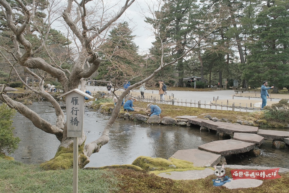 這次喵爸造訪的是位於金澤的兼六園,這座歷經加賀藩前田家歷代藩主長達180年的漫長歲月營造,將「宏大、幽邃、人力、蒼古、水泉、眺望」六種互不相容的意境巧妙融合,因而得名「兼六」。這裡不僅是米其林綠色指南三星景點,更是不少旅人心中日本庭園第一名!