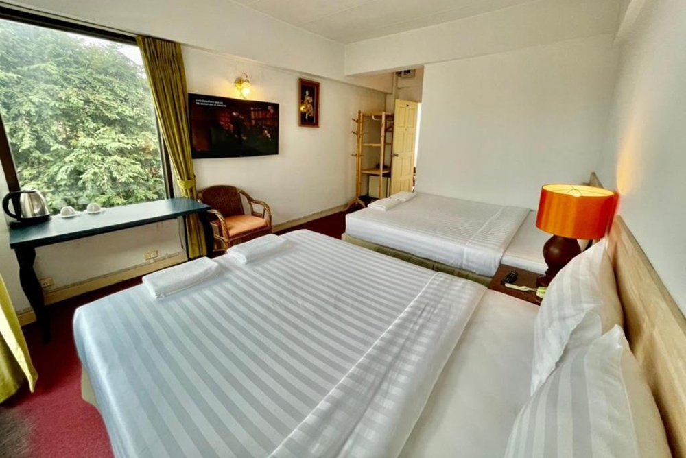 亮點: 有兩個游泳池非常有誠意,在炎熱的曼谷能泡在泳池裡看書發呆,絕對是最高享受。一樓有很大的花園,飯店門口就有極為便宜的泰式按摩與各種街頭小吃,價格只要台幣千元,CP值高到破表。