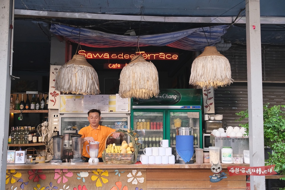 走出飯店巷口就是整排掛著燈籠的酒吧與餐廳,點一份便宜的冬陰功湯、拿著一瓶泰國獅牌啤酒(Leo),聽著駐唱歌手慵懶的歌聲,儘管沒有高空酒吧那種奢華,但這種屬於考山路特有的放鬆與接地氣,正是這些便宜住宿所能提供給房客最大的款待誠意。