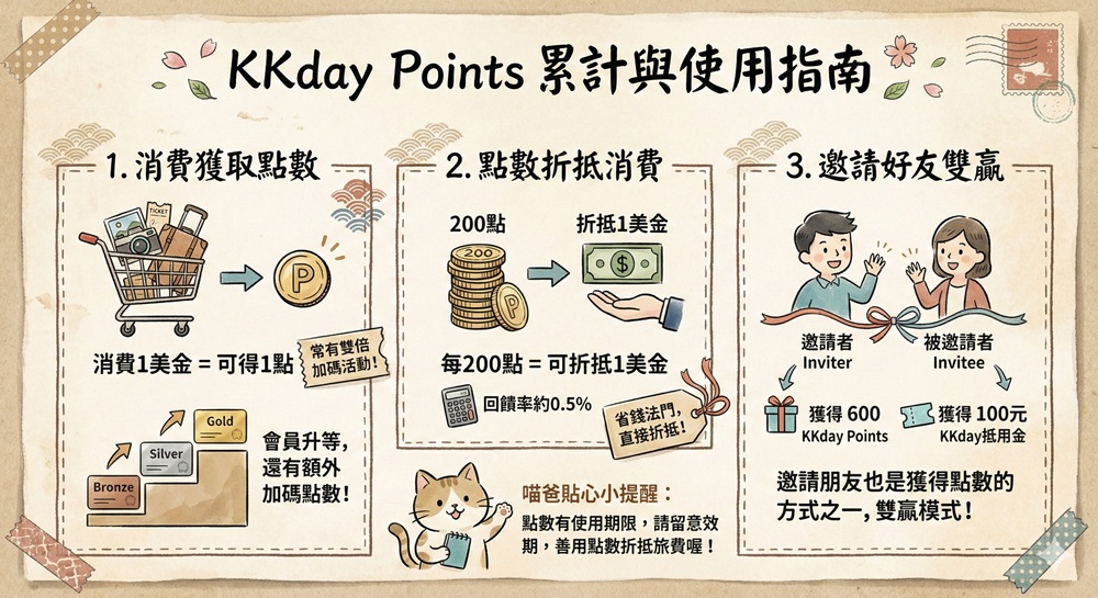 累計KKday Points是KKday超厲害的另一項省錢法門,獲取的方式主要就是消費。