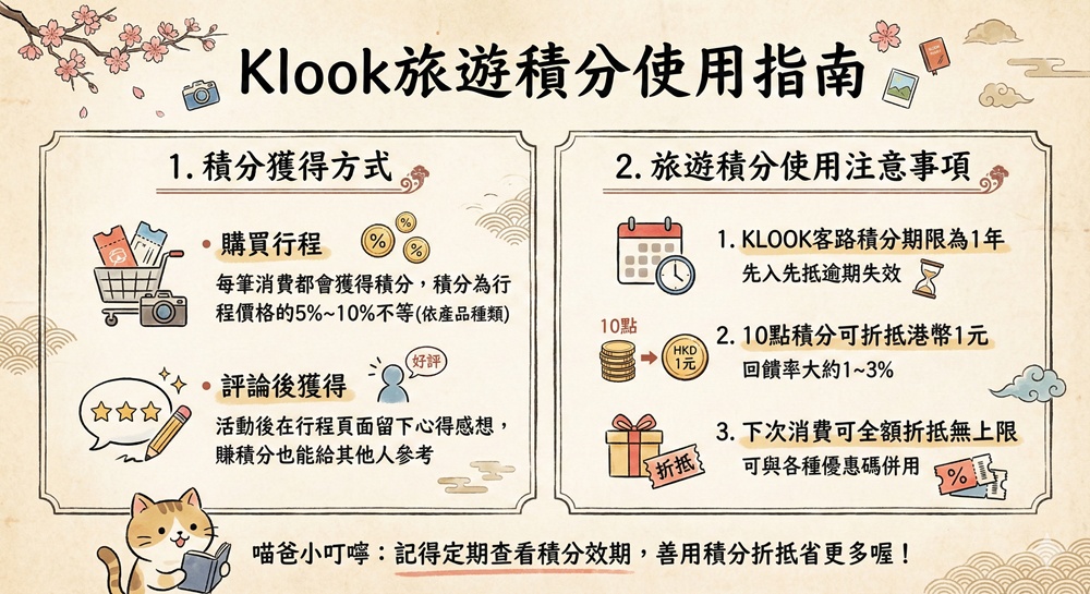 1.KLOOK客路積分期限為1年,先入先抵逾期失效