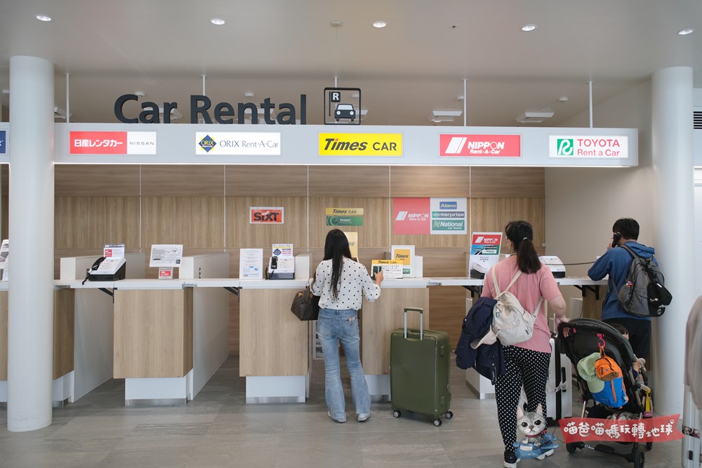 包含TOYOTA、TIMES、NIPPON、ORIX、AVIS、Budget、NISSAN,日本最大的租車公司在機場航廈內都設有服務櫃台,不論是同地取還、異地還車可說都非常方便(下圖為福岡機場租車櫃臺一角)