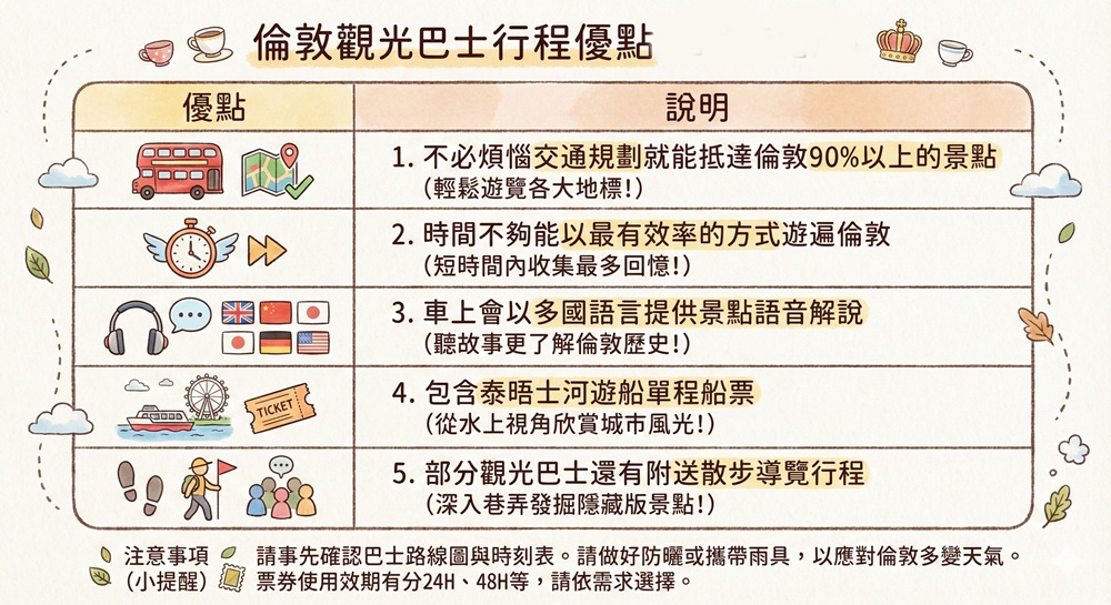 倫敦隨上隨下觀光巴士注意事項