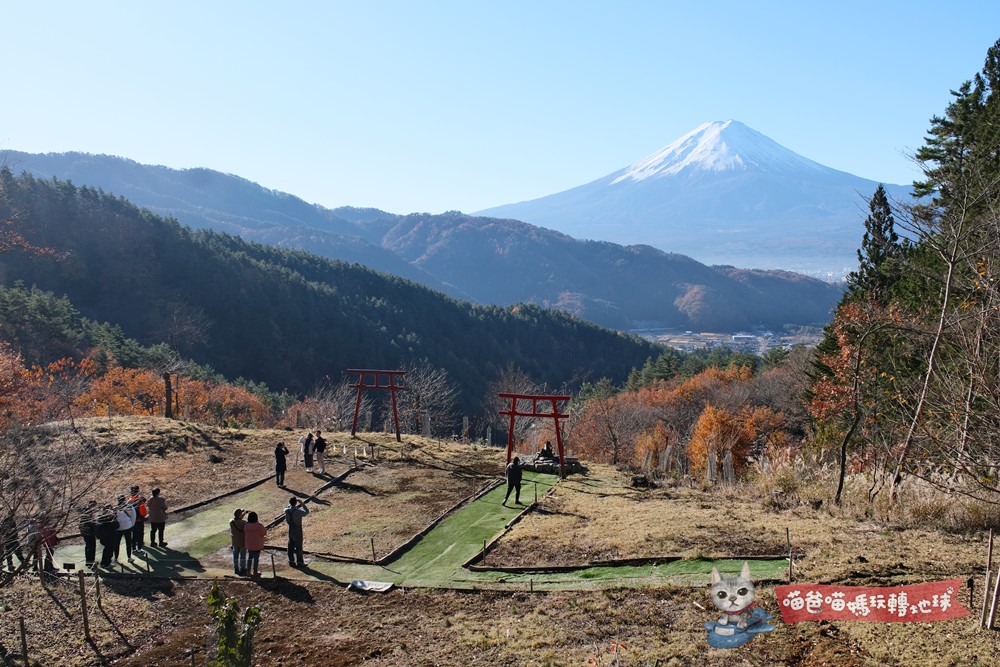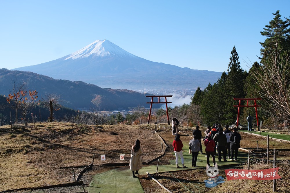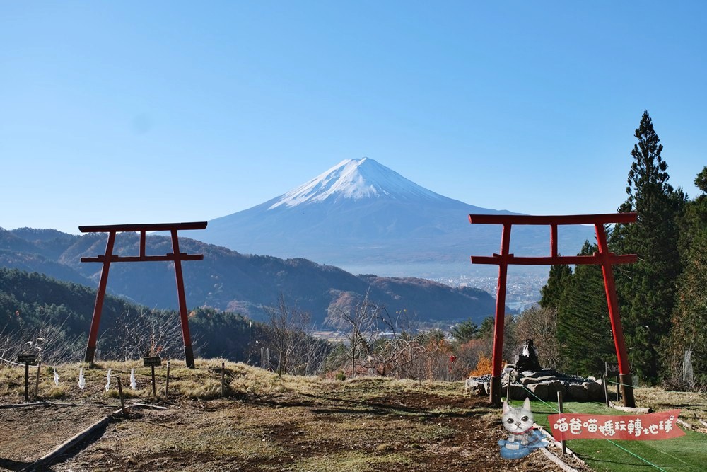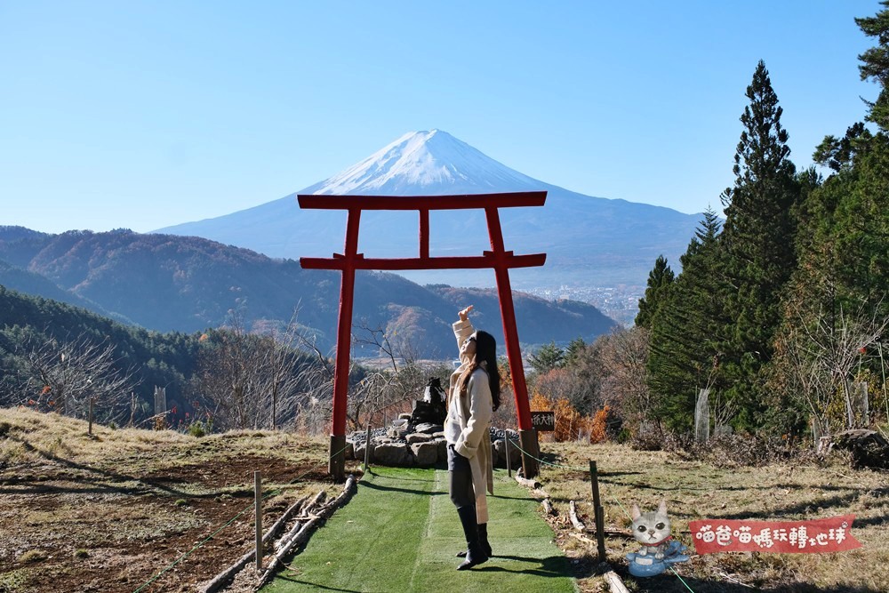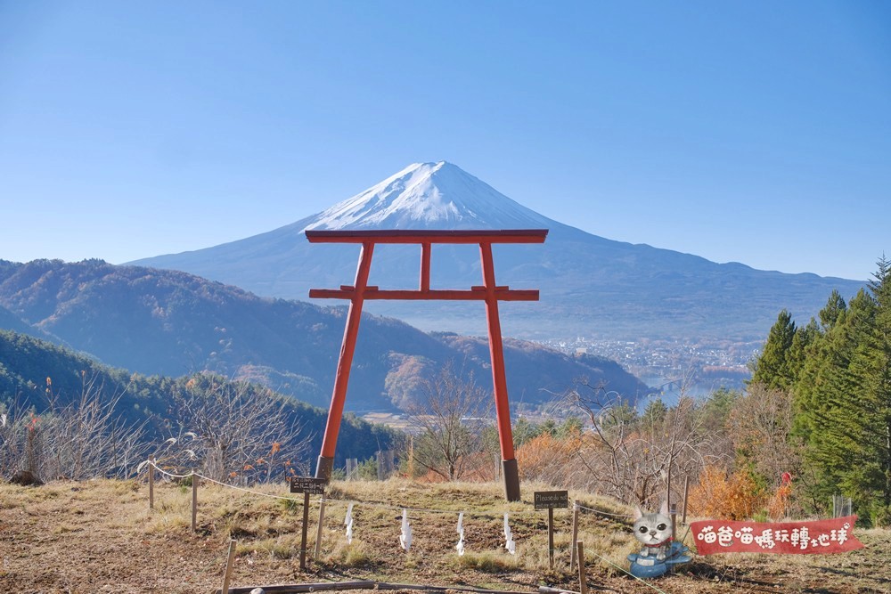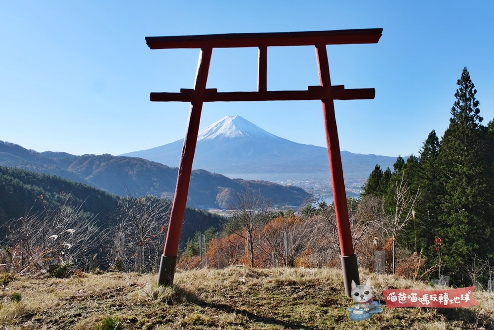 河口淺間神社遙拜所,這是近幾年河口湖最夯的觀景景點,能把鳥居、喵媽、富士山一次全部同框拍進照片裡面,瞬間就在社群媒體、IG上面爆紅,成為來到河口湖不可錯過的必遊景點。
