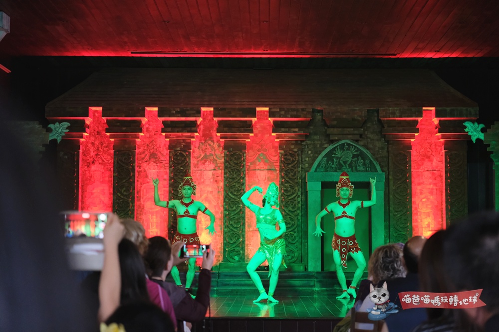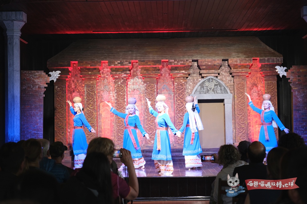 占婆傳統舞蹈表演(Kate Festival Dance)就在古蹟區旁的半開放式劇場。舞者戴著長長的金屬指套,身段柔軟地演繹著獻給神靈的舞蹈,配上傳統陶鼓與號角的樂音,背景就是千年的紅磚古塔,氛圍感直接拉滿,非常有穿越時空的感覺。