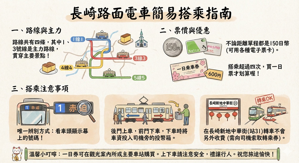 交通方式:長崎路面電車一日券(或各種電子票卡)