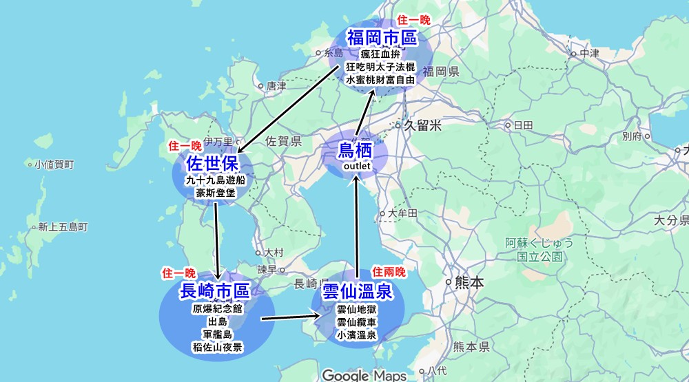 北九州自由行 長崎6天5夜行程規劃