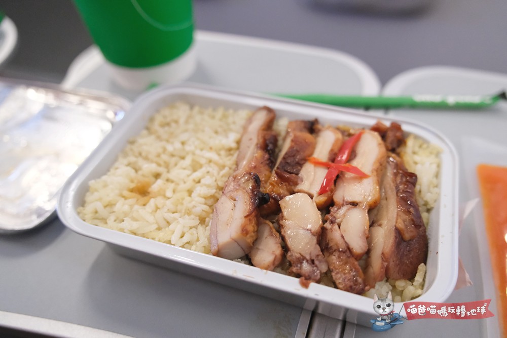 餐點連同20公斤行李只要950元,讓喵爸喵媽也點了一份來嘗鮮,不論是去程的蝦雞餛飩麵、炒粿條、回程的燒雞飯味道都出乎意料不錯,而且這價格也不算貴。