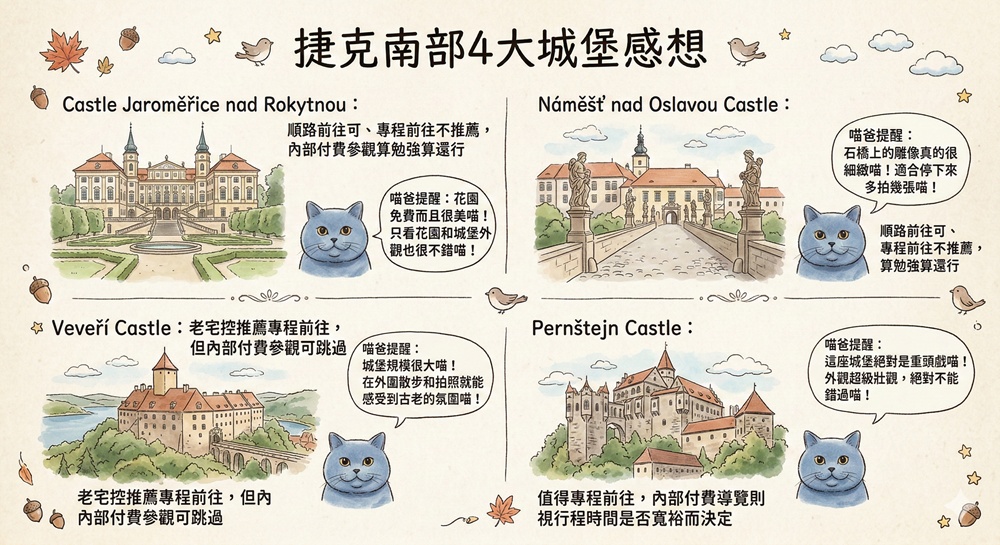 瘋狂的利用兩天時間跑了布爾諾(Brno)周邊4大百年城堡,讓喵爸毒舌一下參觀後感想。