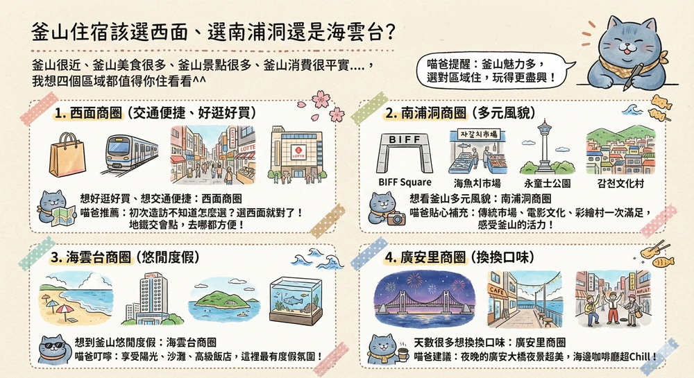 釜山很近、釜山美食很多、釜山景點很多、釜山消費很平實….,我想四個區域都值得你住看看^^