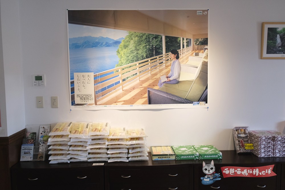 裝潢擺設不差,但軟硬體設施就直接打回商務飯店規格,簡單的沖泡式茶包、一個小角落販售日光當地特產,這些就是日光車站經典飯店公共空間的全部^^
