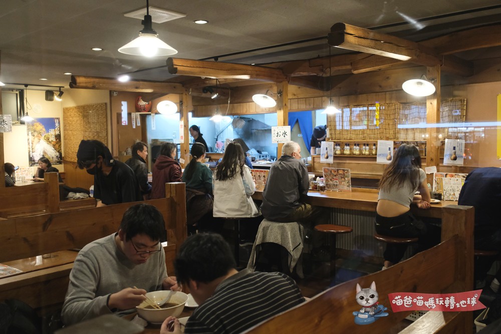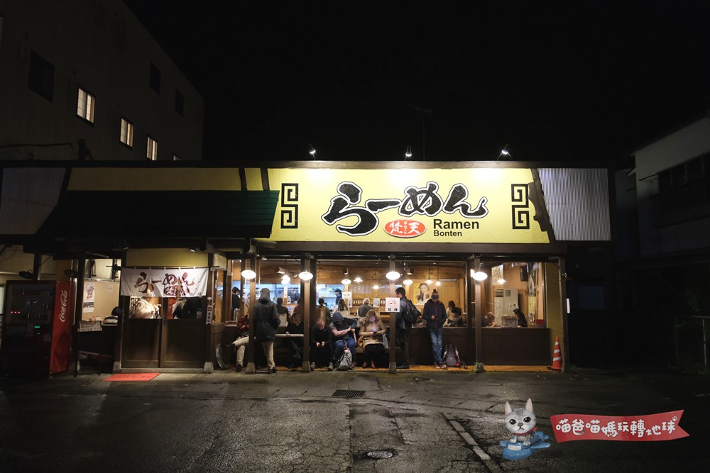 除了車站前幾個小吃攤還有開到晚上6~7點以外,日光街上可以選擇的餐廳實在是不多,逛了好久也才發現這家擠滿遊客的拉麵店~梵天有開門營業,12月已經頗冷卻聚滿遊客與當地人,大家都是為了這碗熱熱的湯麵前來。